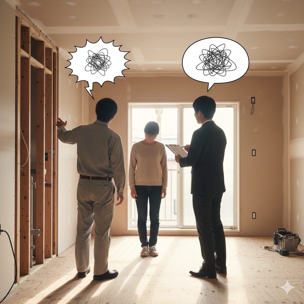 打ち合わせで聞いていた話と、現場で職人さんから聞く説明が違う。